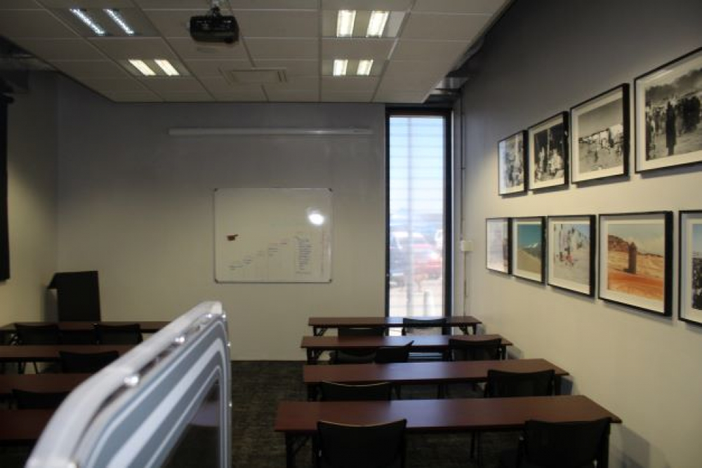 Our classroom holds 30 people in table-writing chairs. Have your presentations, seminars or discussion groups here.